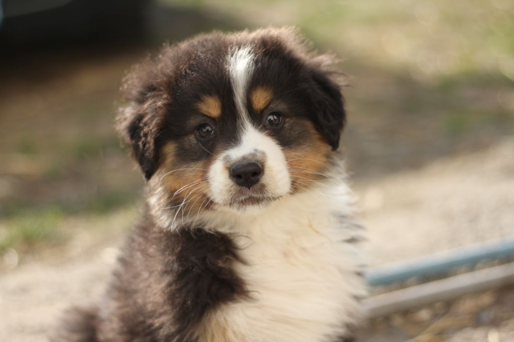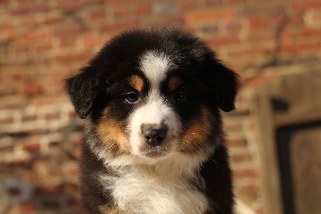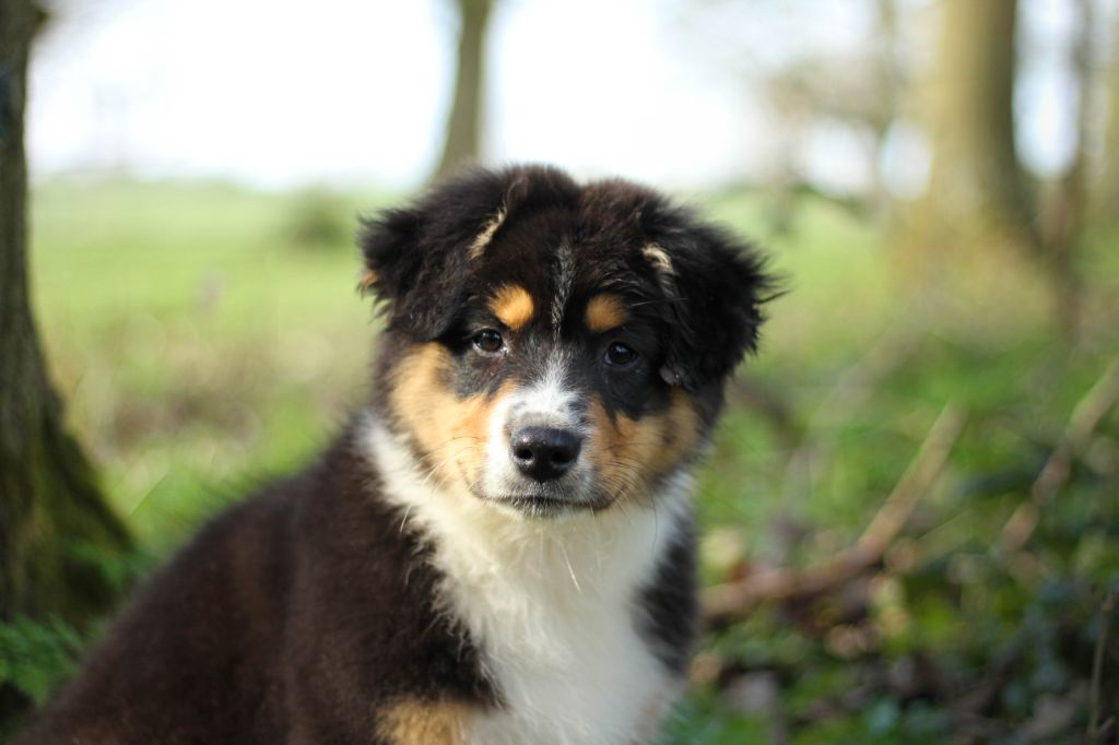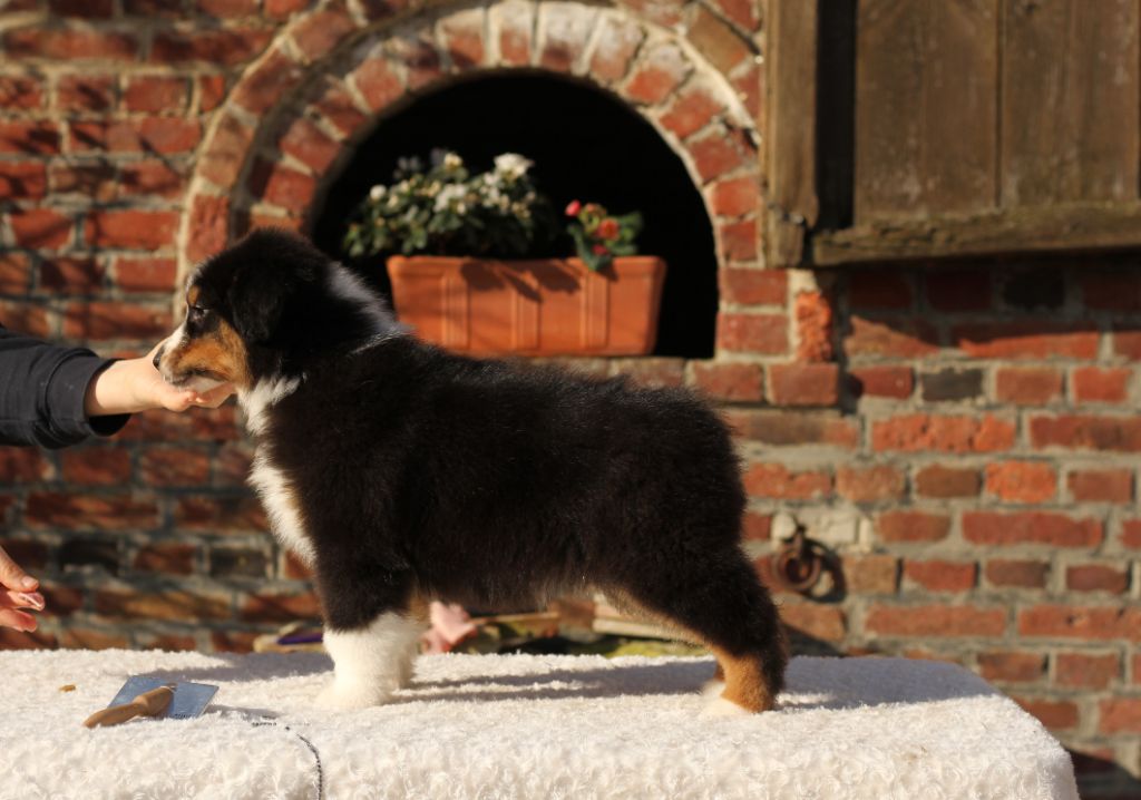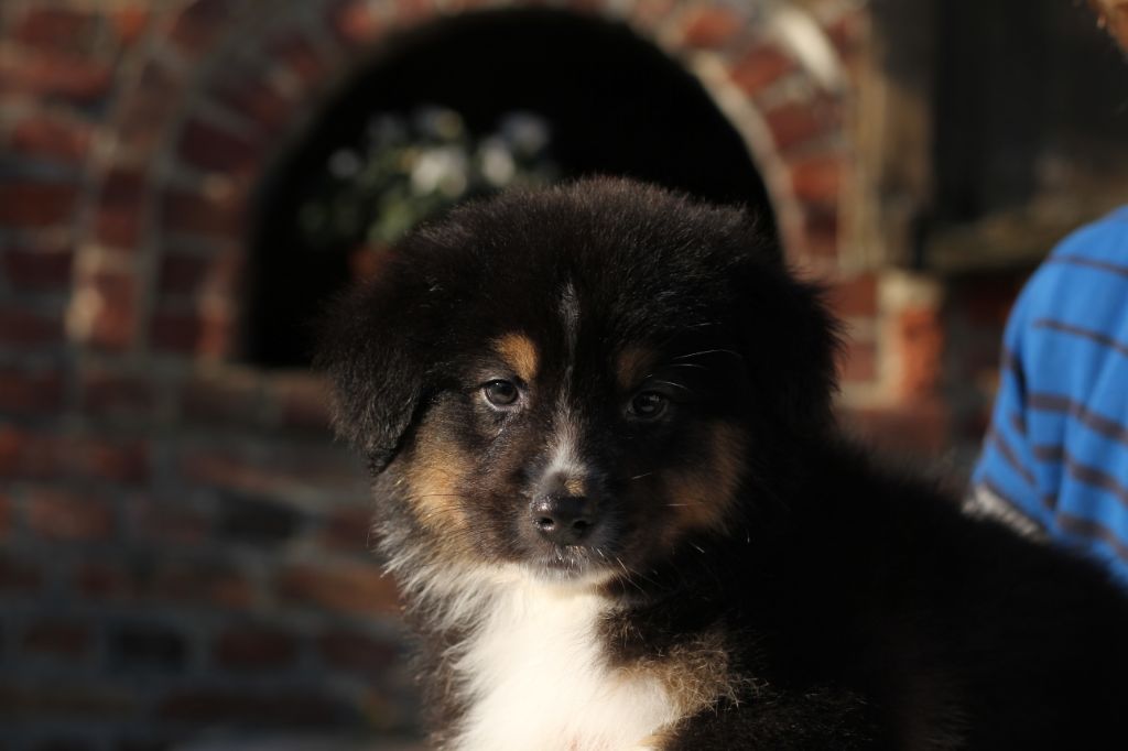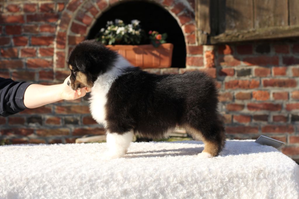 Surnommée "ma gentille" est une chienne vraiment très câline, elle cherche absolument le contact humain, matin et soir. Elle est la première dans mes bras le matin et la dernière à aller dormir. Elle est beaucoup plus douce que le clown présentait ci-dessus. Une chienne plus sensible et très proche de son maître, elle très câline et certainement plus à l'écoute. Morphologiquement elle est plus fine, mais a de superbes allures avec beaucoup d'élégance et un joli équilibre. En tête elle a aussi de papa. Au vu du pedigree elle sera forcément poilue, mais je pense (au risque de me tromper) qu'elle aura de longues franges aux pattes comme sa maman.